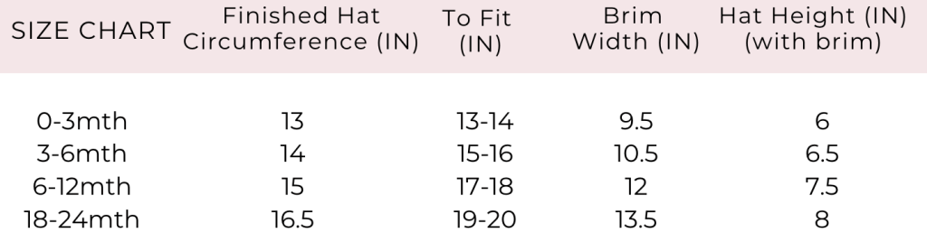 Baby Sunhat Size Chart