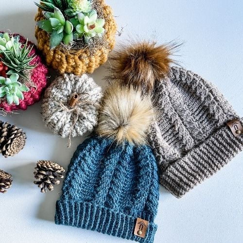 To ensure the whole family can have matching hats, the pattern comes in size 3-6 months to adult 23″ head size. That is five sizes in total.