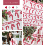 - This crochet pattern features bold candy cane motifs and shimmering red yarn, perfect for holiday decor.
