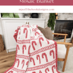 The Candy Cane Lane Mosaic Blanket is a gorgeous and festive crochet project that combines classic Christmas charm with modern texture. Designed using the overlay mosaic crochet technique, this blanket features bold candy cane motifs, sparkling red shimmer yarn, and a beautiful holiday aesthetic that suits any home decor.