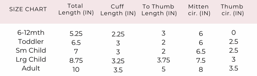 Mittens: 6-12mth (Toddler, Sm Child, Lrg Child, Adult) 100 (155, 165, 235, 335) Yards