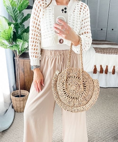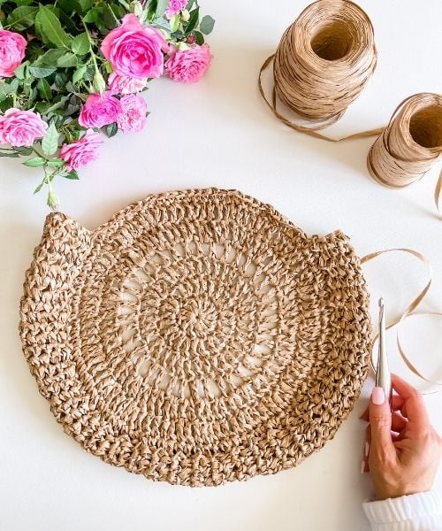 The crochet bag for beginners will look great with everything in your summer wardrobe! It’s the perfect straw bag for summer. Use this straw bag for beach, or for the market. Wear with any outfit dressy or casual for a natural beachy vibe. The easy crochet bag pattern for beginners is written in Standard American terms and detailed pictures are included in the written PDF.