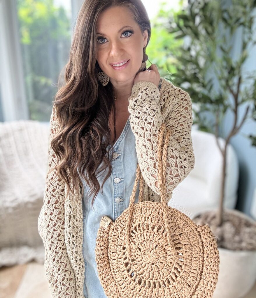 The crochet bag for beginners will look great with everything in your summer wardrobe! It’s the perfect straw bag for summer. Use this straw bag for beach, or for the market. Wear with any outfit dressy or casual for a natural beachy vibe. The easy crochet bag pattern for beginners is written in Standard American terms and detailed pictures are included in the written PDF.