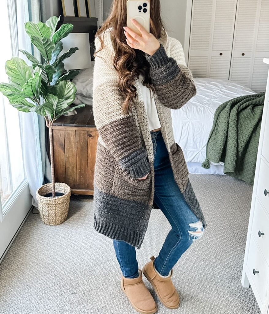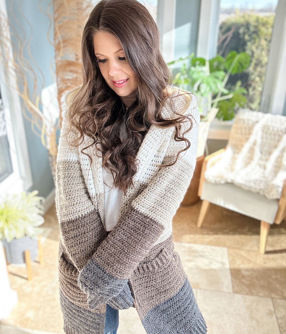 The Crochet Colour Block Cardigan is a fun and quick crochet project! You’ll be surprised at how fast it works up.