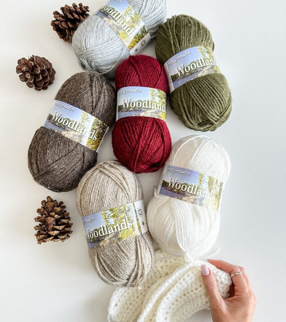 Mary Maxim Woodlands (USA) (CDN) is an affordable Premium Acrylic and Alpaca Blend. I chose a very neutral colour palette for making this Crochet Cardigan Pattern. Woodlands from Mary Maxim has a nice selection of soft Modern colours, so customize the colours to your liking! If you are not finding any colours to suit your taste, I have provided a list of great substitutes down below!