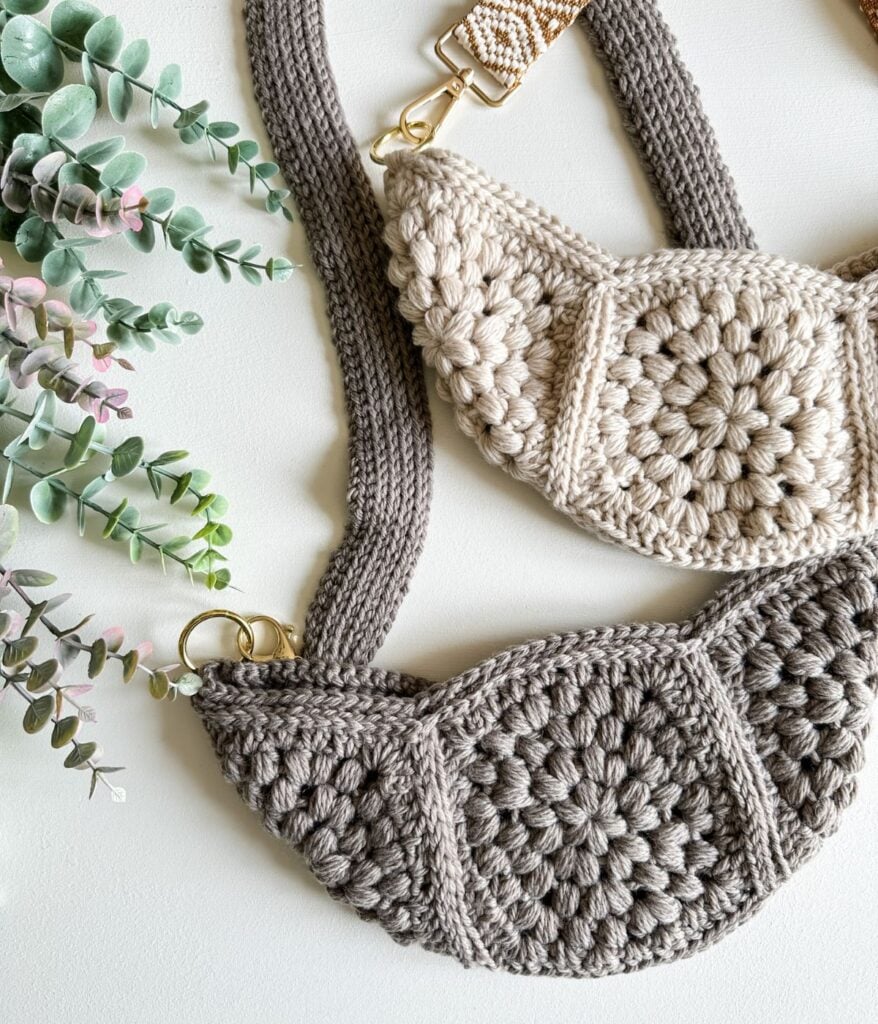 Introducing the Crochet Crossbody Bag – a stylish mix of modern design and traditional crochet techniques. The unique highlight of this elegant bag is the gorgeous puff stitch granny square pattern that creates beautiful texture and visual interest.