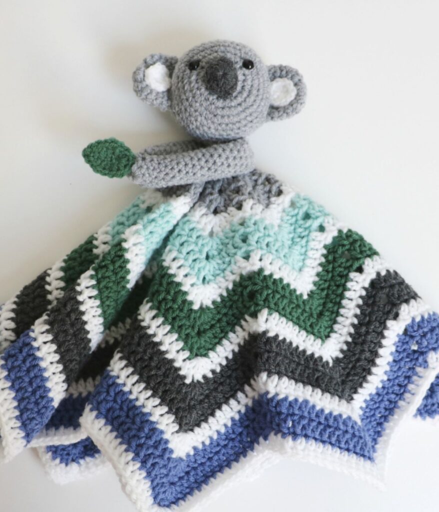 - The Crochet Koala Lovey is a plush toy and security blanket, perfect for baby gifts.