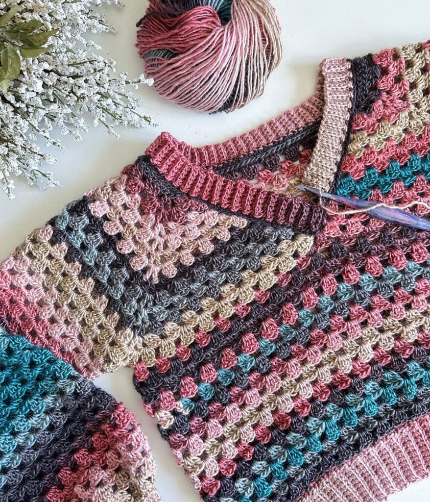 Say goodbye to lengthy and complicated projects that leave you feeling overwhelmed. Our granny stitch v-neck crochet sweater pattern is intentionally crafted to be quick and easy, allowing you to feel a sense of accomplishment as you watch your creation take shape. Create a cozy v-neck sweater that will become an enduring staple in your wardrobe. Let’s get crocheting!