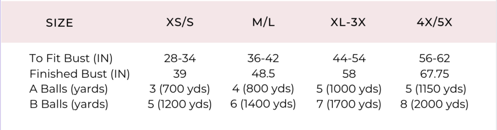 Additionally, please note that the only pattern support offered for this pattern is available on our Facebook community group and through the YouTube tutorial. The modifications given in the PDF are the only ones included, so if you choose to modify the pattern or use a different yarn weight, you will need to figure out the modifications on your own.