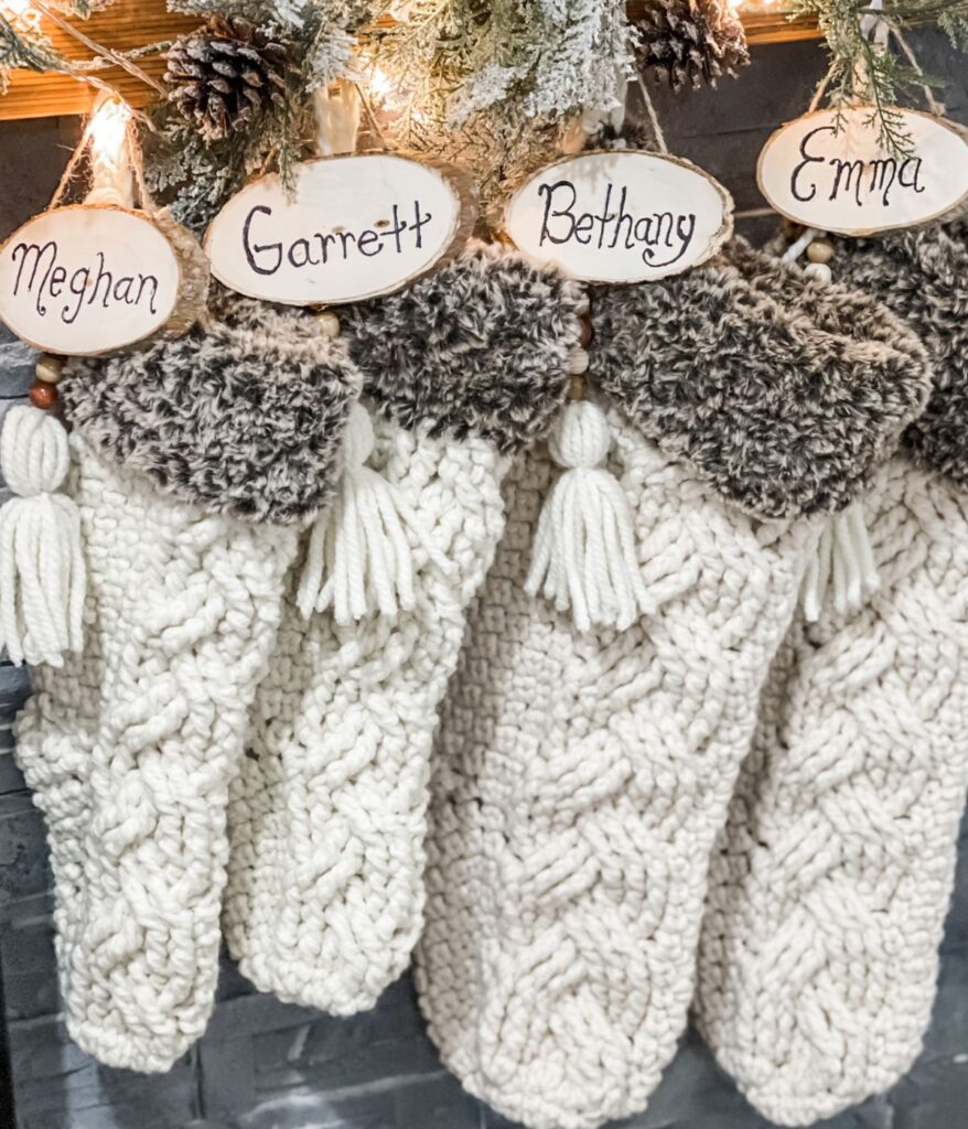 The Fable Cable Crochet Stocking is a quick and bulky Christmas stocking pattern. The small Christmas Stocking is free on the blog with a video tutorial on YouTube. The PDF pattern includes small and large size stockings.