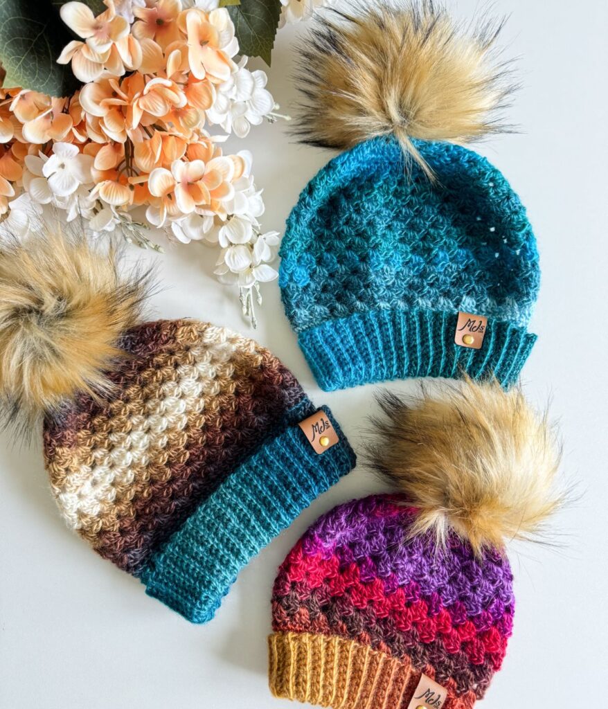 With fall approaching, it’s the perfect time to crochet a set of these gorgeous hats for you and your family! They make an excellent market prep item or a thoughtful gift. The fun and playful colours of Mary Maxim Prism (CDN) yarn will ensure these hats are real show-stoppers!