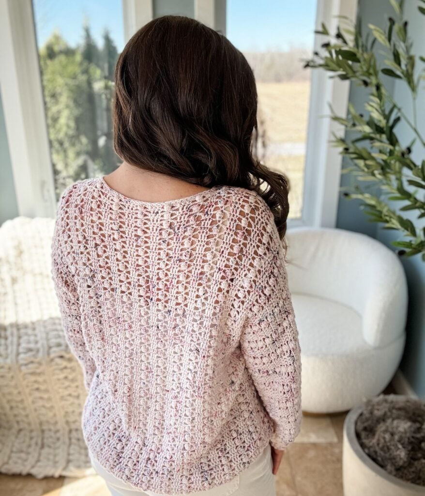 But what truly sets this pullover apart is its charming bobble stitch, creating an open and airy design that’s simply perfect for those breezy summer days. Get ready to crochet your way to a wardrobe staple that’s as fun to make as it is to wear!