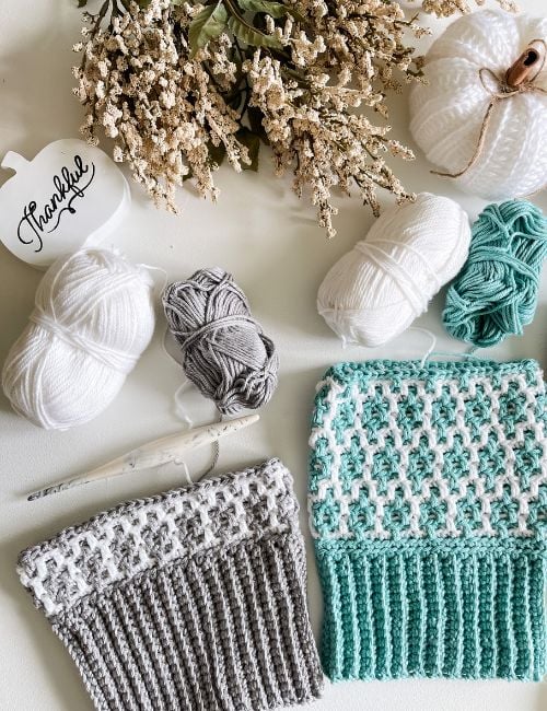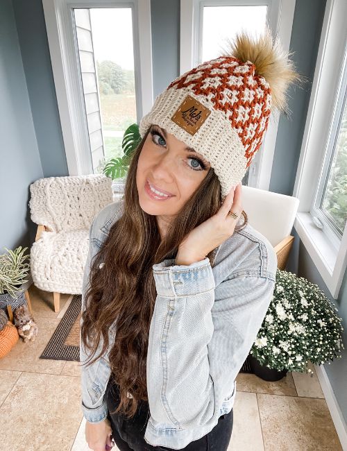 I designed the Hello Pumpkin Mosaic Crochet Hat in a yarn that is suitable for the entire family, including a 0-3mth size. Comfy worsted weight yarn from WeCrochet is a soft Pima Cotton Acrylic blend. It won’t irritate babies’ skin, and it’s soft and breathable. I also like that it’s not too warm for Fall weather, so it’s perfect for hiking and other autumn outdoor activities.