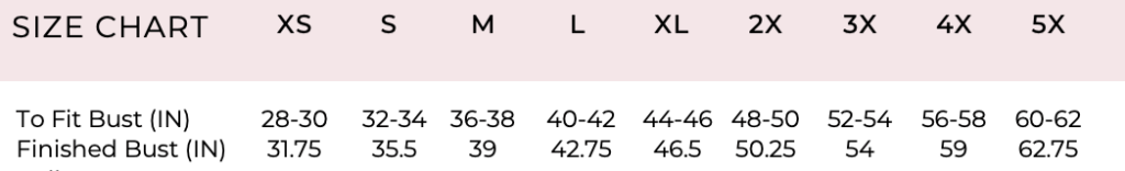 “To fit bust” vs “finished bust”; Understanding the size chart