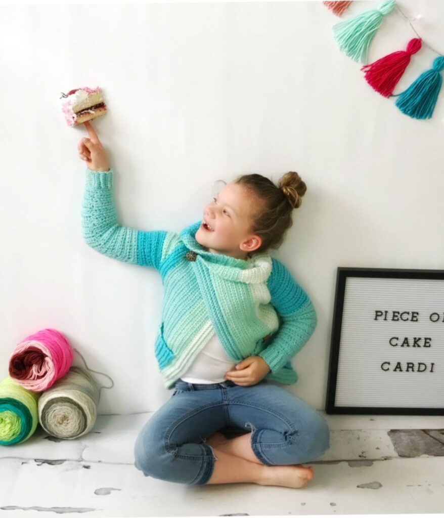 - The Piece of Cake Cardi is a fun crochet project available in both kid and adult sizes.