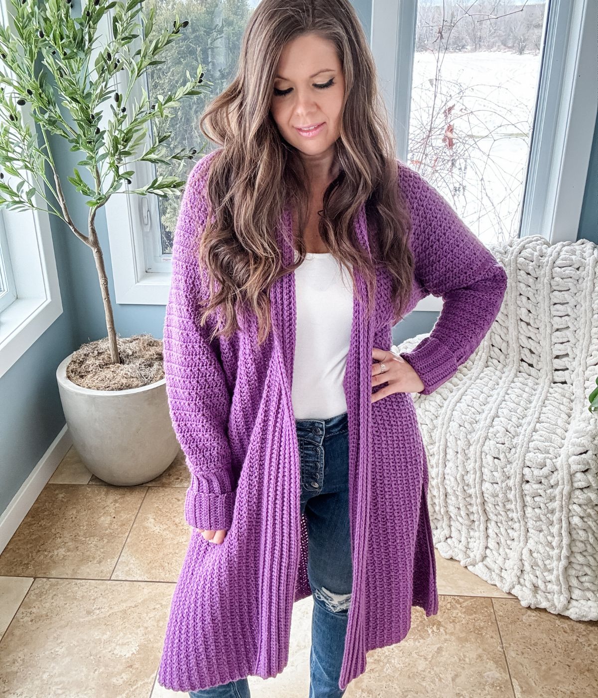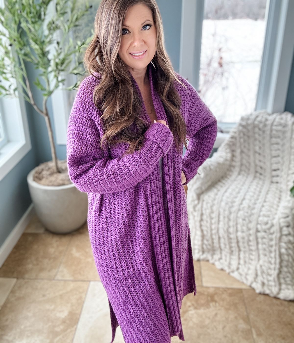 This long, oversized crochet cardigan feels like a warm hug on a chilly day! The Mauve-A-Lous Duster Cardigan pattern is written in standard American terms and includes sizes S–5X. A detailed schematic is provided, along with measuring instructions for sleeve length, allowing you to customize your cardigan to fit just right. The duster length is approximately 36–38″, with guidance on how to adjust the length to your preference.