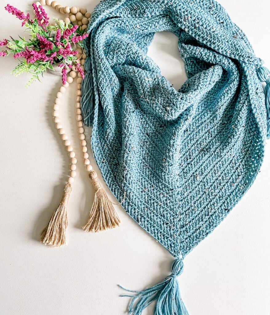 The herringbone crochet stitch shawl is sure to become one of your favourites for Spring and Fall wear. It makes the perfect crochet gift for a loved one or a great seller for craft markets. They work up quickly and due to the repetitive stitch pattern, they are easy to crochet while on the road, talking with friends or while watching TV.