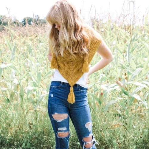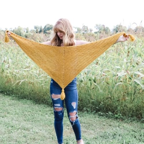 The original pattern was worked in Bulky weight yarn, and the new pattern is crocheted in worsted weight. No need to worry about the difference in yarn weight because the gauge is not important for this crochet shawl pattern. All you need to do is keep working rows until the size you’d like is reached.