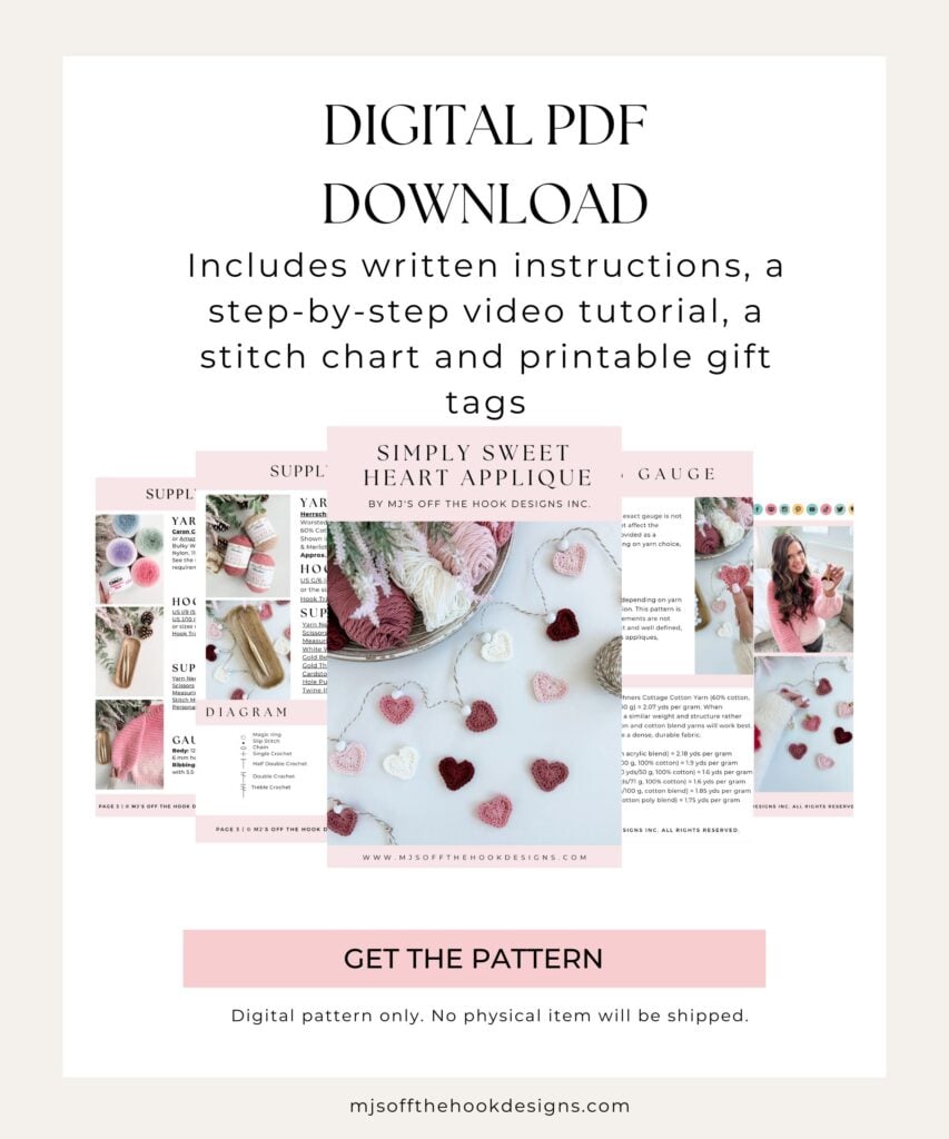 This free crochet heart appliqué pattern is available on the blog, with the full free written pattern at the bottom of this post.