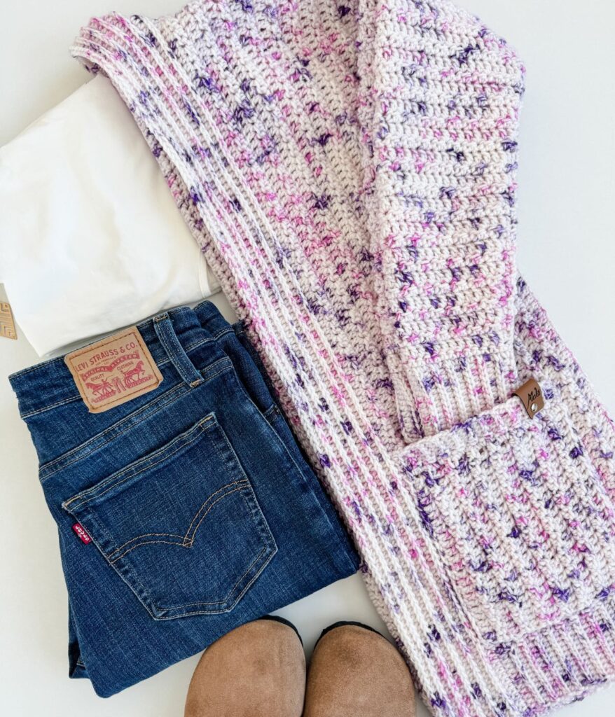 Learn how to crochet a cardigan with this easy-to-follow textured pattern! The side-to-side construction allows for endless customization—perfect for those who love to go rogue when crocheting.