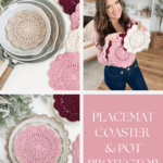 - Matching crochet placemat, coaster, and pot protector patterns