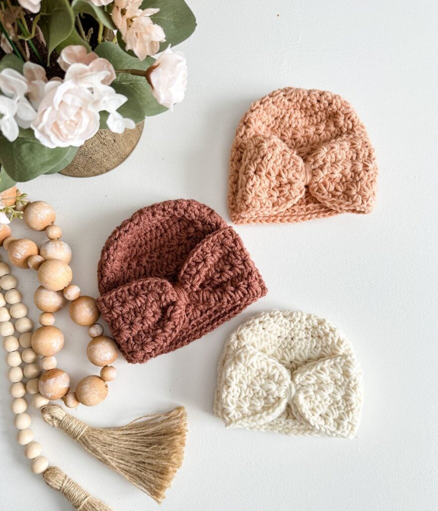 There is just something about babies and big bows! I added a crochet oversized bow to my star stitch baby hats and some with roses. The crochet pattern includes instructions to make both! It is for sure a matter of personal preference, but bows on babies are cute. The bow adds a touch of whimsy and personality to the already adorable baby, making them even more irresistible.
